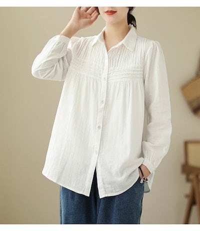 長袖 ガーゼ ブラウス ダブルガーゼ シャツ 秋 ガーゼシャツ レディース チュニック 折り襟 レディース トップス 長袖 ブラウス 柔らか 無地 コットン 綿 2重ガーゼ 長袖シャツ ゆったり 着痩