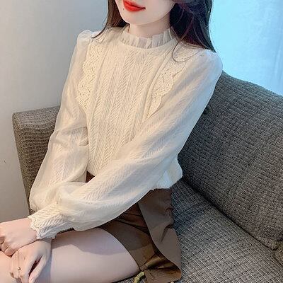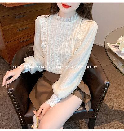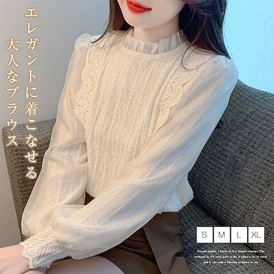 ブラウス 長袖 レディース 総レース 襟フリル ブラウス シャツブラウス 無地 スーツインナー トップス フォーマル オフィス ビジネス 通勤 OL カジュアル おしゃれ キレイめ 可愛い 入学式 卒