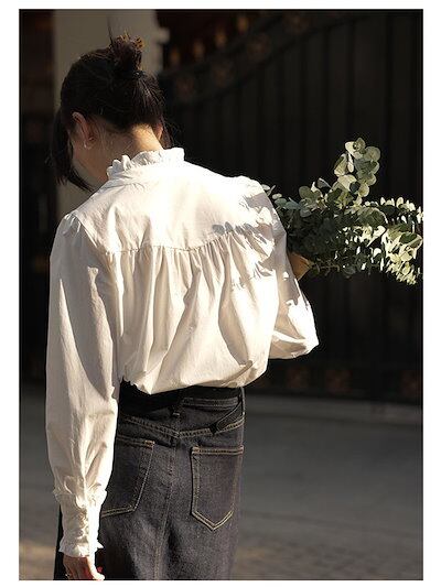 シャツ スタンドカラー ブラウス レディース 長袖 スーツ インナー 白シャツ トップス フォーマル 無地 ホワイト 白 オフィス ビジネス 立ち襟 春 秋 お洒落 通勤 ワイシャツ OL おしゃれ