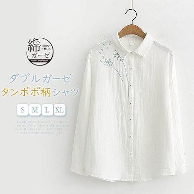 GNLEシャツ ブラウス レディース トップス 白シャツ 白ブラウス 長袖 スーツインナー オフィス ビジネス 事務服 制服 ワイシャツ 形態安定 タンポポ柄 ゆったり ガーゼ 折り襟 シンプル カジュアル
