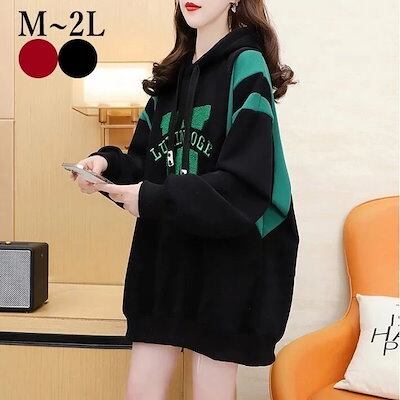 パーカー レディース ドルマン ビッグパーカー フードパーカー プルオーバー ビッグサイズ ロゴ 英文字 ロング カジュアル 大きいサイズ 春 秋 M L 2L