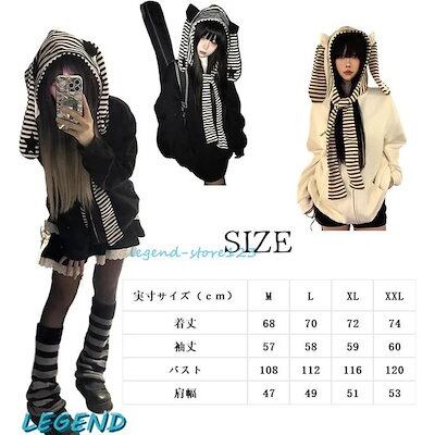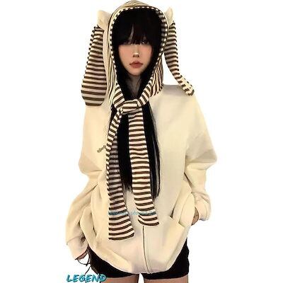 パーカー レディース ウサギ ストライプ 切り替え かわいい 耳付き フード付き 量産型 トレーナー ストリート系 大きいサイズおすすめ商品