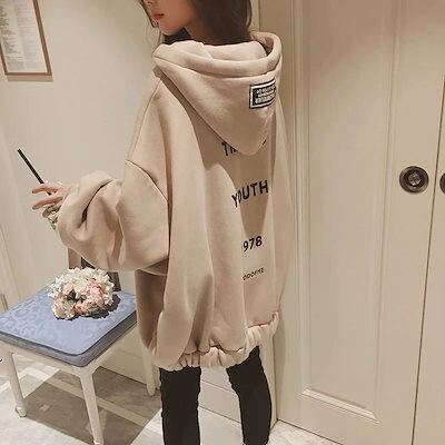 パーカー レディース 韓国ファッション 大きいサイズ 裹起毛 スウェット カジュアル 百掛け カーディガン 秋冬 アウター シンプル おしゃれトレーナー 怠惰な風ジャケット