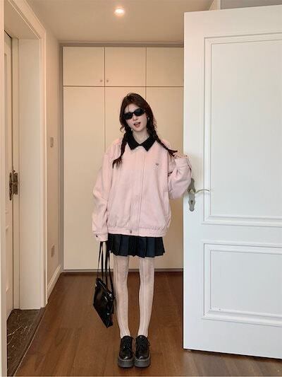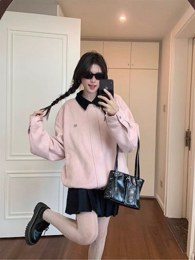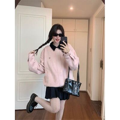 2024秋冬 長袖 かわいい 韓国 スタンドネック アウタートップス 羽織り合成レディースフェイクコーデカジュアルシルエットゆったりファッション系サイズ 色っぽ 女っぽきれいめ大丈フレンチトラック