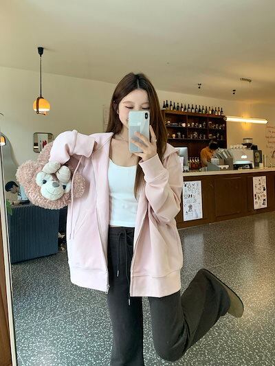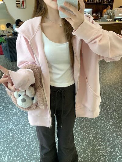 2024 秋冬トップスかわいいパーカー フード付き韓国風長袖ゆったり細見え白黒おしゃれレトロチャッシルエット甘め大人っぽ韓国フルサイズファッション系ルーズレディースサイドお出かけ学生通学トラック羽織り