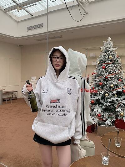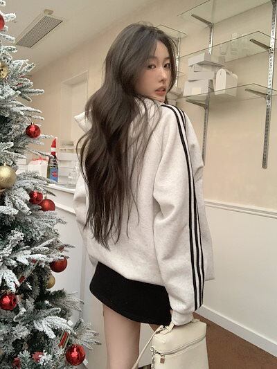 2024秋冬トップス 厚手裹起毛暖かい韓国風長袖防寒レトロパーカーカジュアルルーズファッション系ゆったり大人っぽかわいいレディースフード付き羽織りサイズきれいめシルエットトレーナー 学生通学サイド