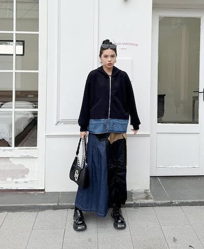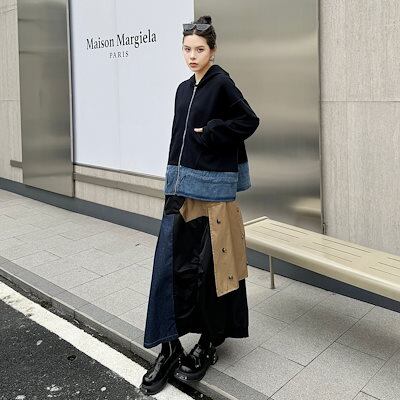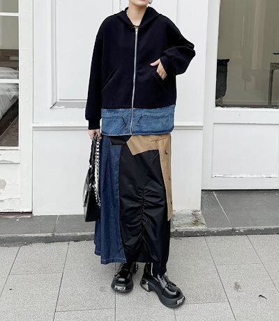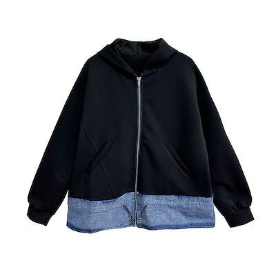 【J.Fashion】 2024秋新品 デニムドッキング ファスナー パーカー スウェット トレーナー レディース ジャケット アウター メガ割