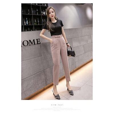 スラックスパンツレディース九分丈通勤黒スラックスストレートズボンボトムス大きいサイズビジネスおしゃれオフィスフォーマルOL着痩せ送料無料