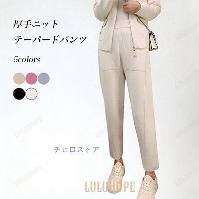 テーパードパンツ ニット レディース ニットパンツ 厚手 サルエルパンツ 長ズボン 美脚 体型カバー お洒落 ウエストゴム ボトムス