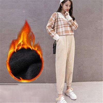レディーステーパードパンツ裏起毛極暖あったかい防寒脚ゴムウエストフリース暖パンコーデュロイ着やせ細身ハールーン風保温