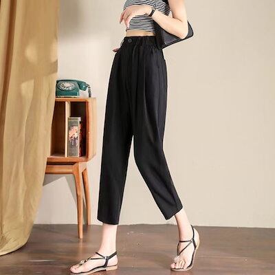 スラックスおしゃれ9分丈リネンパンツテーパードパンツボトムスタック入り綿麻アンクル丈脚脚長効果吸汗速乾カジュアルパンツポケット付き春夏秋カラーパンツレディース