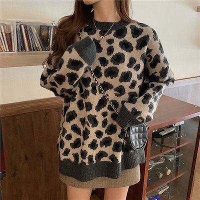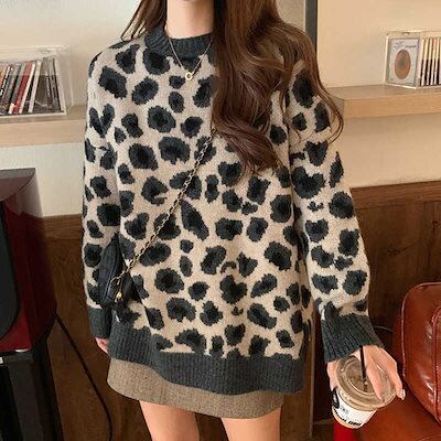 Tシャツカットソー 豹柄 セーター レディース 秋 新作 レトロ ゆったり アンダーウェア ニット 百掛け トップス ベーシックニット