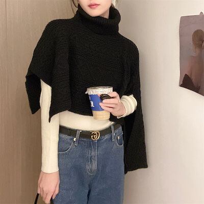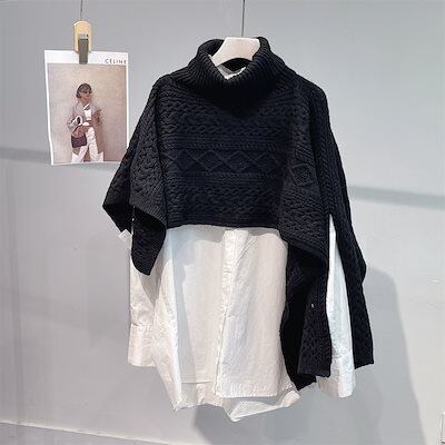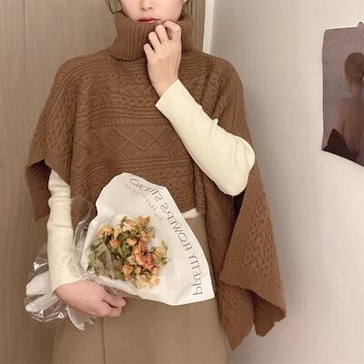 ニットセーター レディース ポンチョ レディース 冬 ケープ コート ケーブル編み ニットケーブル タートルネック 不規則 防寒 あったか 暖かい 無地 ルームウェア 大きいサイズ 可愛い