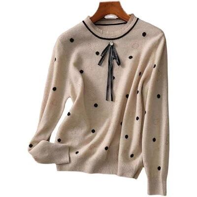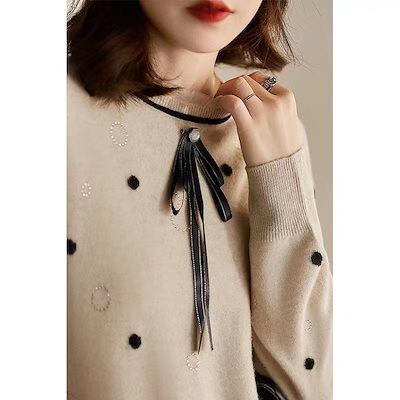 ニットセーター レディース ニットセーター レディース 秋冬 40代 長袖 トップス ドット柄 リボン セーター ショット丈 ニットソー ゆったり プルオーバー 韓国風 オシャレ