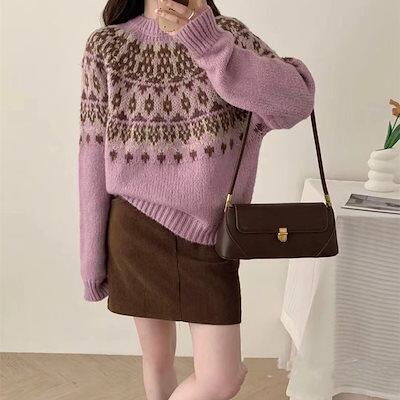 森系レトロゆったりニット女秋冬のけだるさアウターはモチモチフェアーアイランドセーター