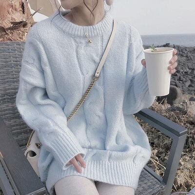 セーター ケーブル編み レディース ニット トップス 秋冬 ニットセータ アウター プルオーバー ニット カットソー ニットソー 無地 長袖 uネック 厚手 柔らかい あったか ニットセーター シン