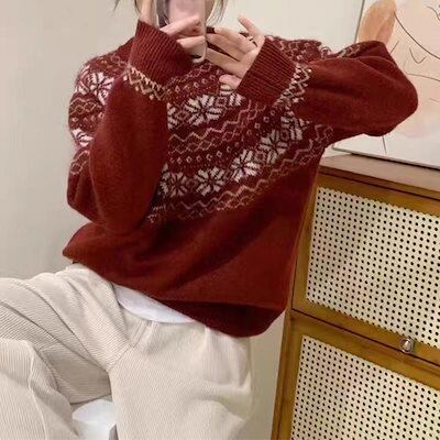 ニットセーター ニット トップス レディース 秋冬 セーター ニットセーター 長袖 花柄 クルーネック 秋 冬 ニットソー プルオーバー オーバーサイズ アウター 大きいサイズ 配色 セーター ドルマ