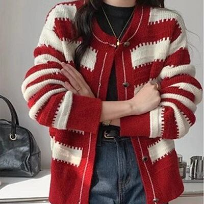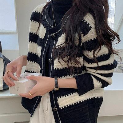 カーディガン アウター セーター レディース ニットアウター 秋冬 ニットセーター 秋 羽織 トップス ジャケット ボーダー柄 コート ニットコート ゆったり ショート丈 体型カバー 前開き カジュア