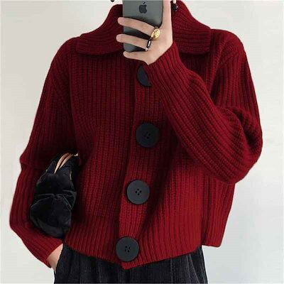 カーディガン セーター セーラーカラー レディース 無地 ニット ニットセーター アウター 前開き 羽織り トップス カットソー ニットソー 秋冬 ビッグボタン 長袖 上着 羽織もの 部屋着 カジュア