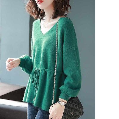 セーター vネック ニット ニットセーター バルーン袖 トップス レディース プルオーバー セーター 秋 冬 ストレッチ リブ付き 長袖ニット vネックセーター アウター ニットソー カットソー ニッ
