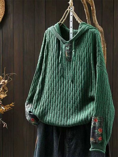 ニット ニットパーカー レディース 秋冬 ニットセーター セーター 長袖 フード付き パーカー プルオーバー ケーブル編み トップス ゆったり 体型カバー カジュアル おしゃれ レトロ アウター 着回