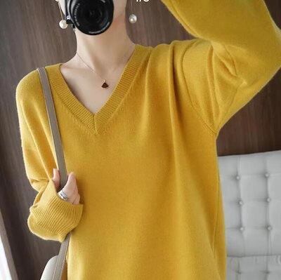 ニット レディース トップス セーター 長袖 Vネック プルオーバー カットソー 無地 厚手 オフィス アウター 大きいサイズ ゆったり カジュアル 黒 春 冬 秋