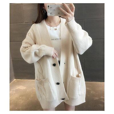 ゆったり ニットカーディガン オシャレ ネックカーディガン 風 アウター レディース 長袖ニットトップス プルオーバー 秋冬 コーディガン 無地セーター