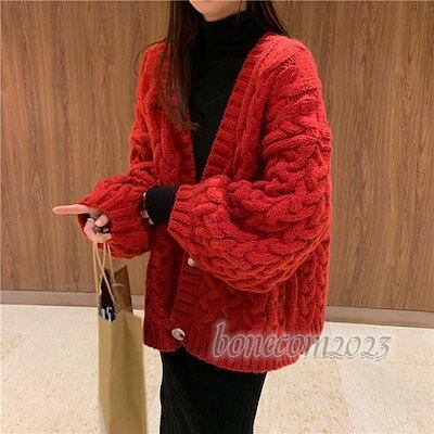 ニットセーター アウター 前開き きれいめ 秋冬 厚手 レディース ニットカーディガン 長袖 可愛い おしゃれ オーバーサイズ セーター