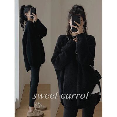 フリーサイズ 伸縮性あり レディース 着やすい 秋冬 長袖 ゆったり アウター カジュアル インナー 色 代代 ニットセーター