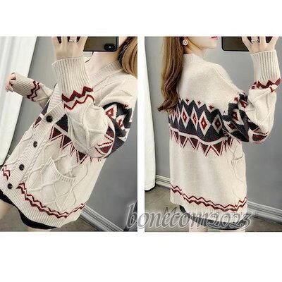 ネックカーディガン ニットカーディガン ショット丈セーターアウター ニットコーディガン 民族風 秋服 レディース 秋冬代長袖 韓国風 ゆったり オシャレ