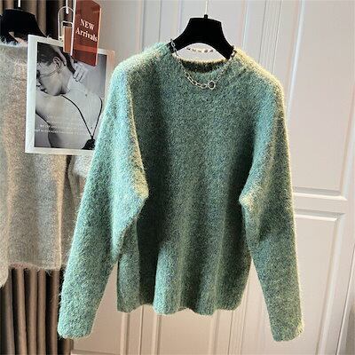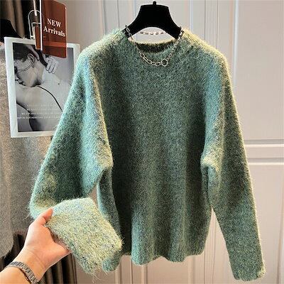 ニットセーター セーター レディース シャギーニット シャギー ニット アウター 長袖 セーター インナー 長袖セーター プルオーバー ニットソー 秋 冬 厚手 秋冬 無地 ふわふわ もこもこ グルー