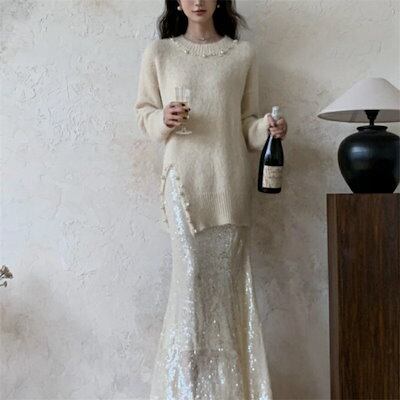 ニットセーター スリット レディース セーター 長袖 ニット 無地 ニットソー インナー アウター 秋冬 無地セーター ニットトップス プルオーバー トップス 防寒 暖かい エレガント 柔らかい ビー