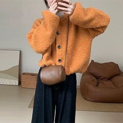 2024秋冬新作フープチュールのけだるい風ショート丈の大判カーディガンレディースファッションの着やせニットトップス