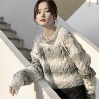 ニットニットレディーストップスグラデーション レトロ ジャパニーズ レイジー ウィンド セーター レディース 多彩なデザイン 小さめアウターの着こなし トレンド