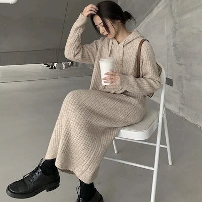 秋冬ファッション ニットワンピース レディース タートルネック 膝丈 ニット ロングセーター 韓国ドレス 20代 30代