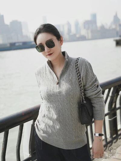 レディース・ウール・セーター ジップアップ ハーフタートルネック・ジャンパー