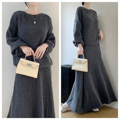 ニット セットアップ 秋冬 レディース ニット スカートスーツ セーター&スカート 2点セット キレイめ 前開き 秋冬セット ロングスカート ゆったり ニットスカート 女性 カジュアル 通勤 OL 体