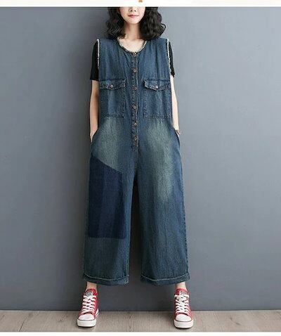 ロング オーバーオール サロペット デニムパンツ きれいめ パンツ レディース 春秋 オールインワン サルエルパンツ フレアー ジャンパースカート デニム ジーンズ テーパード サルエル ボトムス ワ