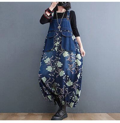デニム オーバーオール 秋 ボトムス パンツ サロペット 大きいサイズ レディース 花柄 春 オールインワン ロンパース 作業服 ジャンパースカー キャミ カジュアル サルエルパンツ フレアー ジーン
