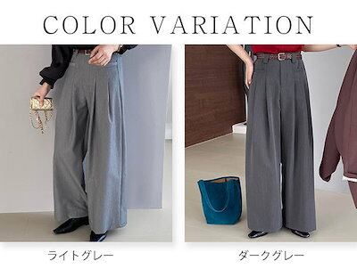 ワイドパンツ タックパンツ パンツ レディース ロングパンツ フレアパンツ スーツパンツ 卒業式 入学式 スーツ ボトムス オフィス カジュアル ロング ワイド タック きれいめ 秋 冬 グレー 無地