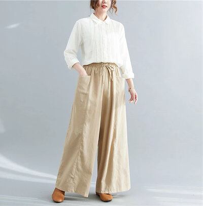 パンツ ワイドパンツ ボトムス ロングパンツ スカーチョ パンツ レディース 春 きれいめ ガウチョ マキシパンツ ズボン 無地 ガウチョパンツ 大きいサイズ フレアパンツ ゆったり 体型カバー 綿麻
