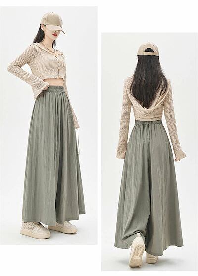 ワイドパンツ パンツ フレア 夏 レディース マキシ ロングパンツ ガウチョパンツ 春 ボトムス パンツ ロング丈 ウエストゴム ガウチョ ワイド 無地 体型カバー 揺れる 薄手 綺麗め ハイウエスト