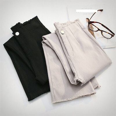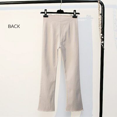 レディース ブーツカット フレア 切りっぱなし ストレッチ スリム 細身 ボトムス 春物 夏物 女性 大人 カジュアル 可愛い フェミニン おしゃれ ファッション ホワイト ブラック S M L サイ