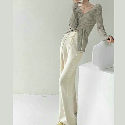 レディース 伸縮性 リブニット フレアレッグパンツ ワイドパンツ 春秋冬 ン ボトムス 無地 ストレッチ 着痩せ 体型カバー 通勤 通学 おしゃれ ズボン きれいめ 着やせ 防寒着 部屋着 ウエストゴ