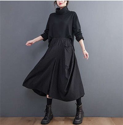 アシンメトリー スカート風 ドレープ ワイドパンツ 袴パンツ はかまパンツ ストライプ柄 メンズ レディース ユニセックス スカート 七分丈 フレアシルエット プリーツ ゆったり 黒 V系 ダンス オ
