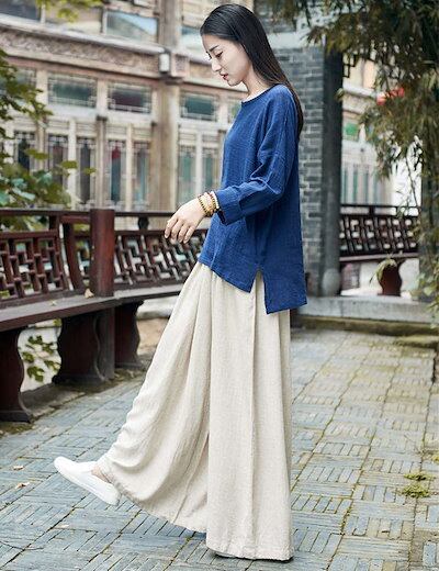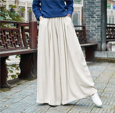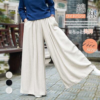 ワイドパンツ レディース きれいめ 春夏 スカーチョ 綿麻パンツ リネンパンツ ウエストゴム フレア ボトムス チェック 楽ちん ワイド ロングパンツ 大きいサイズ ロング丈 30代 20代 40代