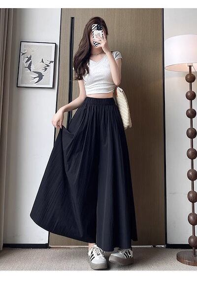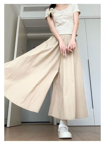 ミモレスカートパンツ フレアスカート ロングスカート ロングパンツ ガウチョパンツ ハイウエスト ウエストゴム ギャザー 着痩せ Aライン スカートパンツ ワイドパンツ レディー