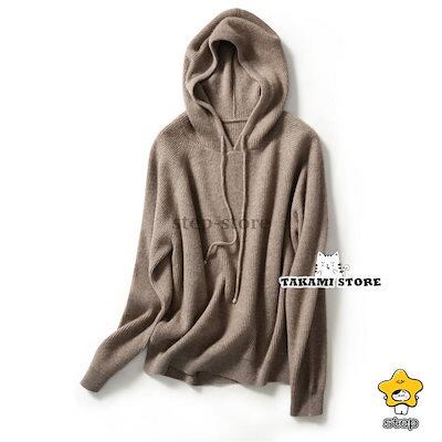 パーカー レディース ニット ニットパーカー セーター プルオーバー トップス 無地 ゆったり 羽織り ストレッチ 防寒 秋冬 通勤 おしゃれ 上品