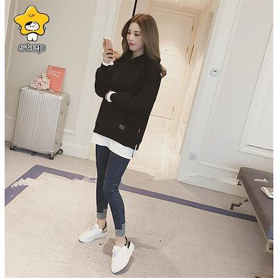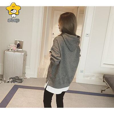 パーカー レイヤード 長袖 レディース フーディー トレーナー プルオーバー 裏起毛 スウェット フード 秋 シンプル お大きいサイズ 20代 30代 冬