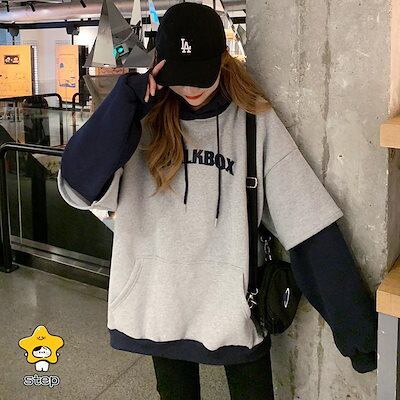 パーカー レディース 韓国ファッション ストリート系 原宿 裏起毛 長袖 ロゴ 安い ビッグ 大きいサイズ 秋 冬 10代 20代 30代 大人 学生